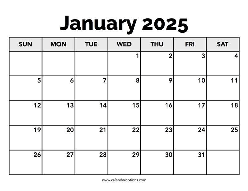 With this blank calendar for January 2025 planning and scheduling events is a joy. Like all the others, the template is free to download as a PDF file. Paper size: US Letter. Document width and height: 11 x 8.5 inches.