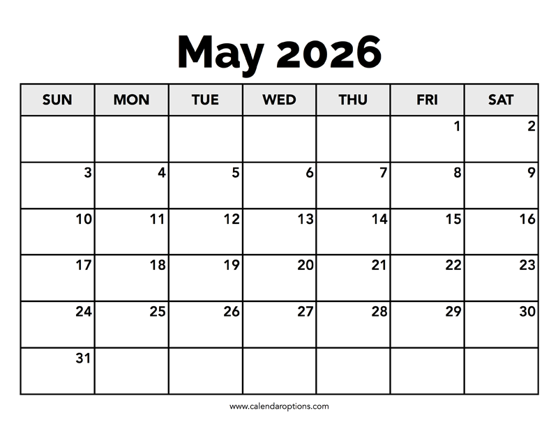 With this blank calendar for May 2026 planning and scheduling events is a joy. Like all the others, the template is free to download as a PDF file. Paper size: US Letter. Document width and height: 11 x 8.5 inches.