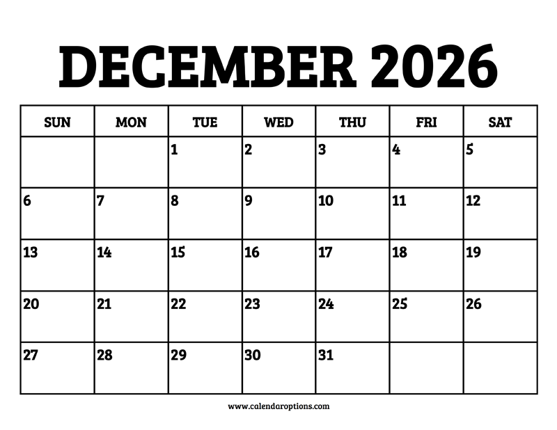 Download this December 2026 calendar printable PDF and start organizing your agenda in a more effective way. Paper size: US Letter. Document dimensions: 8.5 by 11 inches.