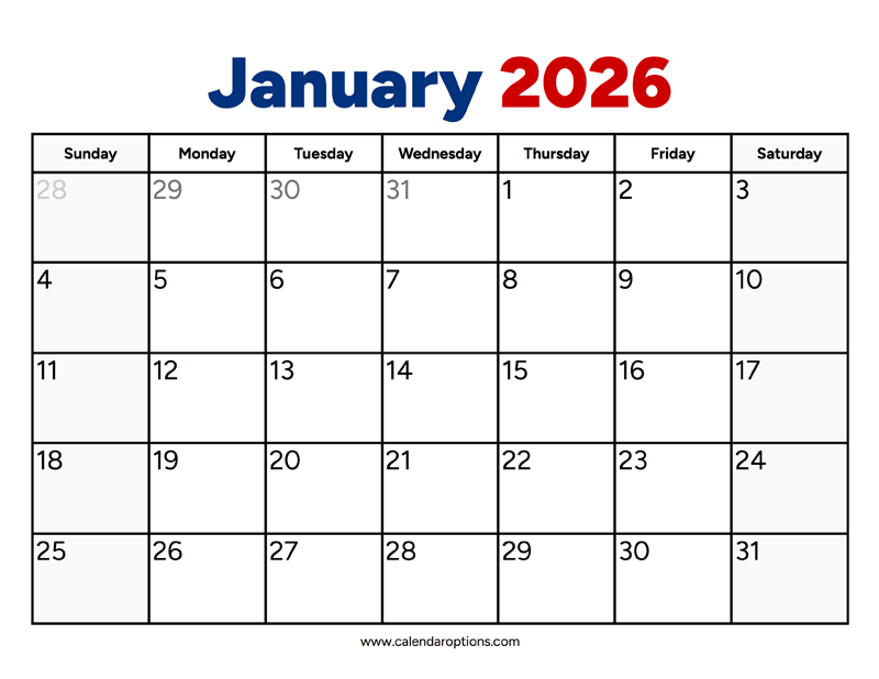 My inspiration for this January 2026 calendar template were the colors red and blue. I wanted to make a design that’s both professional and user-friendly. Like all the templates on this website, this printable calendar for January 2026 comes as a PDF file. This template will help you set goals, prioritize tasks and get things done in the first month of 2026.