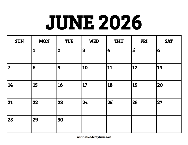 Download this June 2026 calendar printable PDF and start organizing your agenda in a more effective way. Paper size: US Letter. Document dimensions: 8.5 by 11 inches.