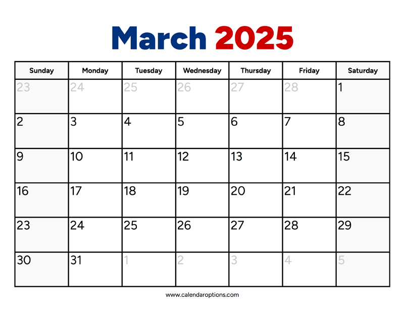 I made this March 2025 calendar template because most calendars are either black and white or too cutesy and colorful. My printable March calendar does use red and blue for the header, but I’ve balanced this with a clean design that lets you focus your schedule. If you’re busy professional, student or simply someone who likes to stay organized I suggest to give this March calendar for 2025 a try.