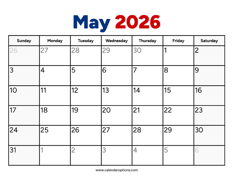 I designed this May 2026 calendar template with simplicity in mind, while still making it visually appealing. The bold red and blue colors used for the title "May 2026" add a pop of color to your workspace or home office without being too overwhelming. Hopefully, this printable PDF file will help anyone looking to stay organized and focused.