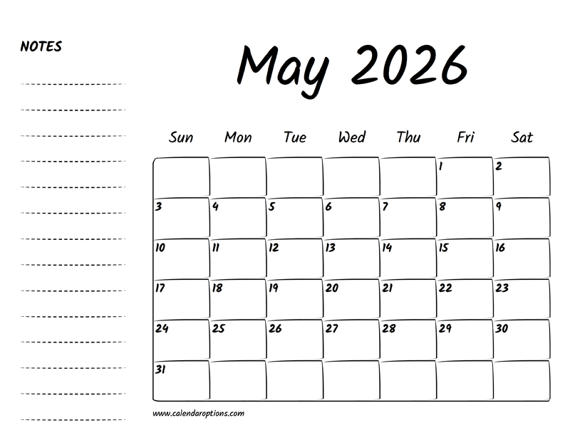 Download this May 2026 printable calendar that’s perfect if you’re a goal oriented person. The left-hand to do list is great for keeping tasks right next to the hand drawn calendar. Paper size: US Letter. Document dimensions: 8.5 by 11 inches. Format: PDF.