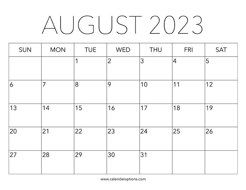 This printable August 2023 calendar was optimized to be eco-friendly by using less printer ink compared to other templates. Paper size: US Letter. Document width and height: 11 by 8.5 inches. Format: PDF.