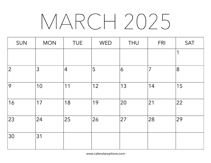 This printable March 2025 calendar was optimized to be eco-friendly by using less printer ink compared to other templates. Paper size: US Letter. Document width and height: 11 by 8.5 inches. Format: PDF.